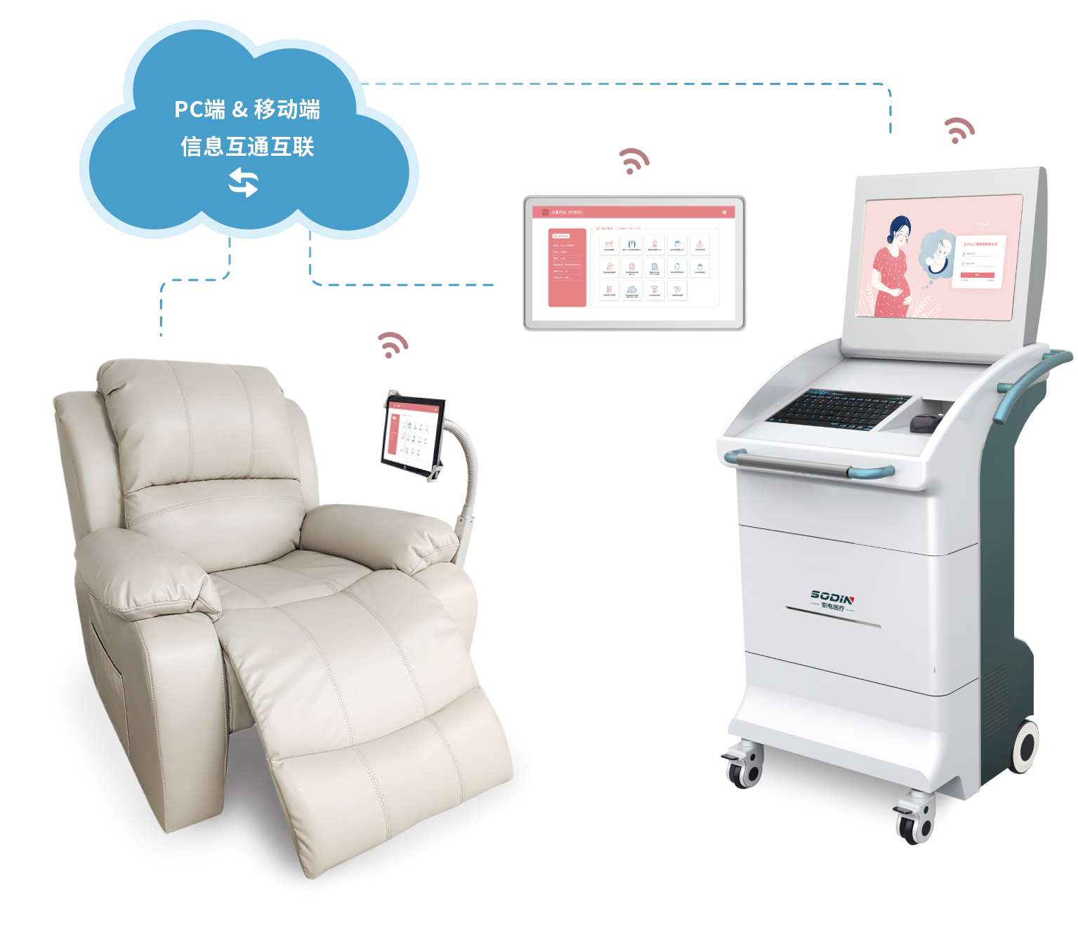 孕產婦身心健康管理系統是索電醫療設計研發的一款高端系統,主要解決孕產婦的心理及生理問題,避免因孕期身心健康不良對孕婦和胎兒造成的一系列的影響。通過人工智能技術、智能化信息集成與數據分析、患者管理與追蹤、云平臺大數據等技術,從門診至臨床、院內至院外、線上至線下等多方面,為醫院提供全方位、多層次、多維度的孕產婦身心健康整體解決辦法,是孕產期身心健康診療干預的新標準、新規范。